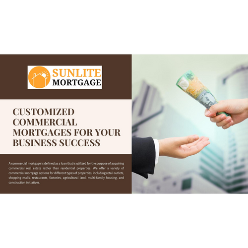 Sunlite Mortgage specializes in providing customized commercial mortgage loans designed to help your business thrive. Whether you're purchasing, refinancing, or expanding commercial properties, we offer tailored solutions that align with your unique needs. Our diverse range of options includes fixed-rate mortgages, variable-rate loans, and short-term financing, ensuring flexibility and stability. With competitive interest rates and a streamlined application process, Sunlite Mortgage is your trusted partner in achieving business success through the right commercial mortgage loan for your goals. https://www.sunlitemortgage.ca/loan/commercial-mortgages/