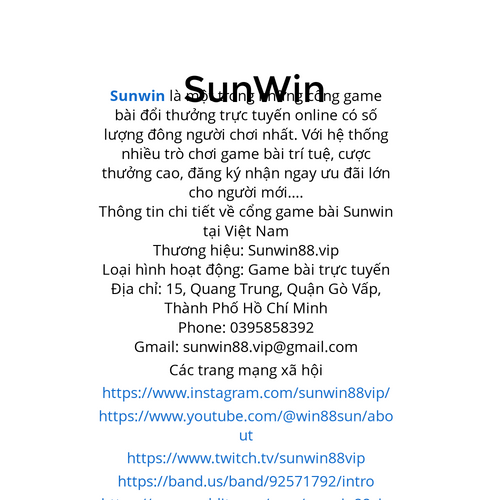 Sunwin là một trong những cổng game bài đổi thưởng trực tuyến online có số lượng đông người chơi nhất. Website: https://sunwin88.vip/