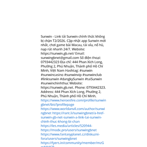 Website: https://sunwin.gb.nethttps://sunwin.gb.net Sunwin - Link tải Sunwin chính thức không bị chặn T2/2026. Cập nhật app Sunwin mới nhất, chơi game bài Macau, tài xỉu, nổ hũ, nạp rút nhanh 24/7. Website: https://sunwin.gb.net/ Email: sunwingbnet@gmail.com Số điện th