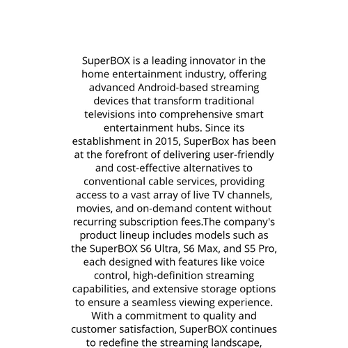 Website: https://mysuperboxtv.com/ SuperBOX is a leading innovator in the home entertainment industry, offering advanced Android-based streaming devices that transform traditional televisions into comprehensive smart entertainment hubs. Since its es