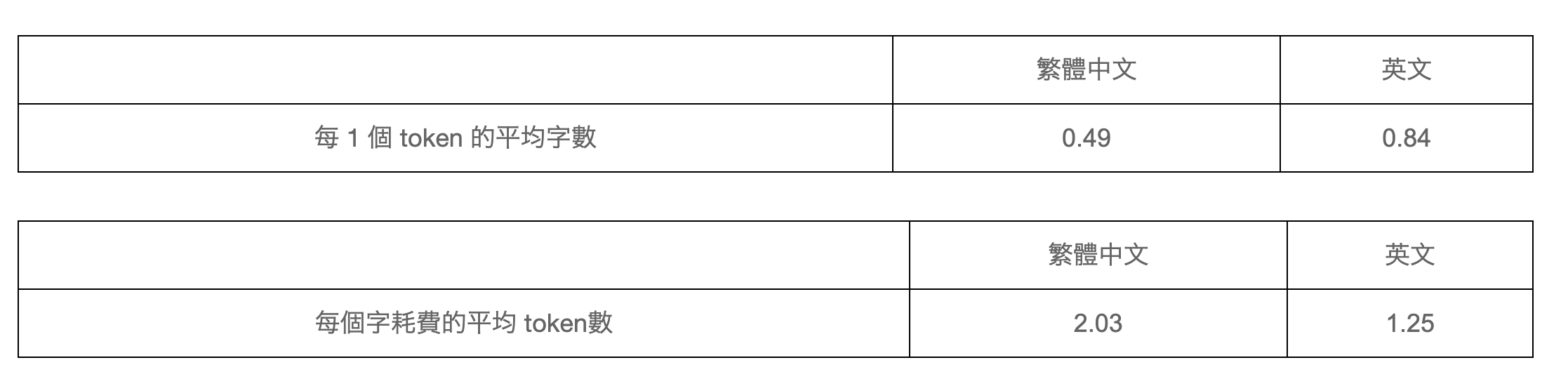 例:「你好嗎」=7 tokens, 「我很好」=6 tokens