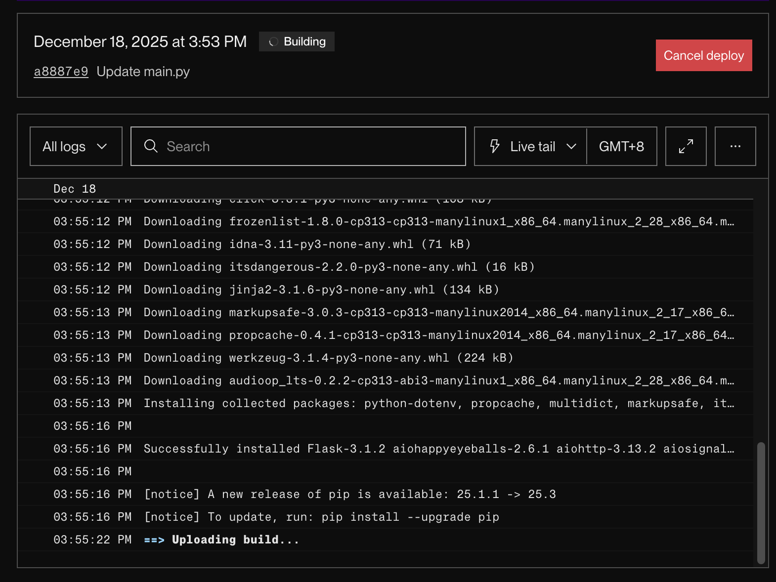 開始跑之後應該可以看到 deploy status