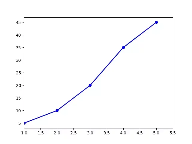 plt.plot(x, y, color='blue', linewidth=2, marker='o') # Step 3&4