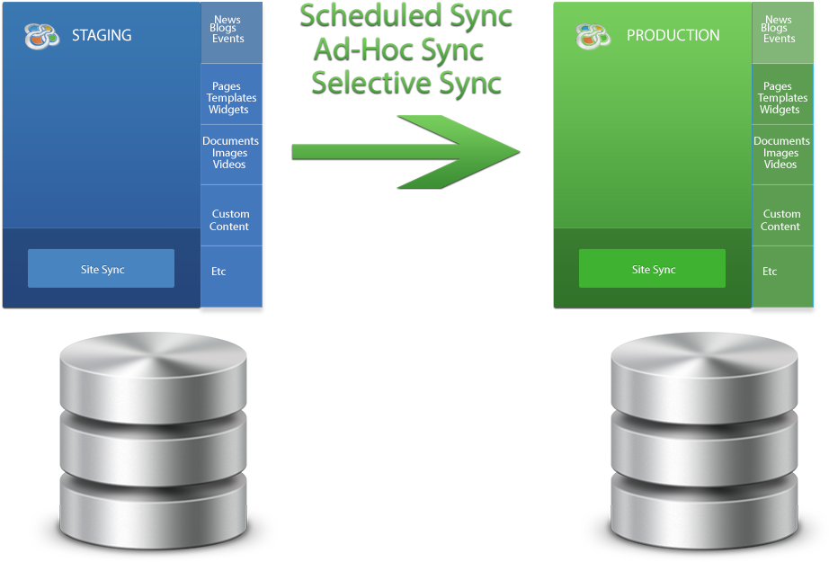 Site sync provides a user interface for automatic secure synchronization between any environments such as staging, testing, development and production.