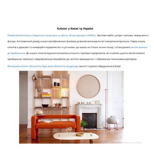 http://svitanok.kiev.ua/ Професійний клінінг у будинках і квартирах, в офісах, бізнес-центрах і HoReCa. Чистимо меблі, штори і килими, моєму вікна і фасади. Багаторічний досвід наших кваліфікованих фахівців дозволяє виконувати всі замовлення Ідеально