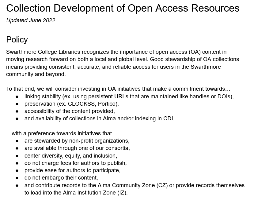 Library Collections and Open Access Initiatives