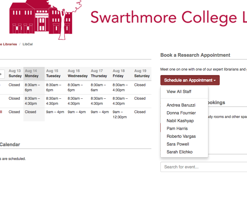 ...book an appointment at swarthmore.libcal.com...