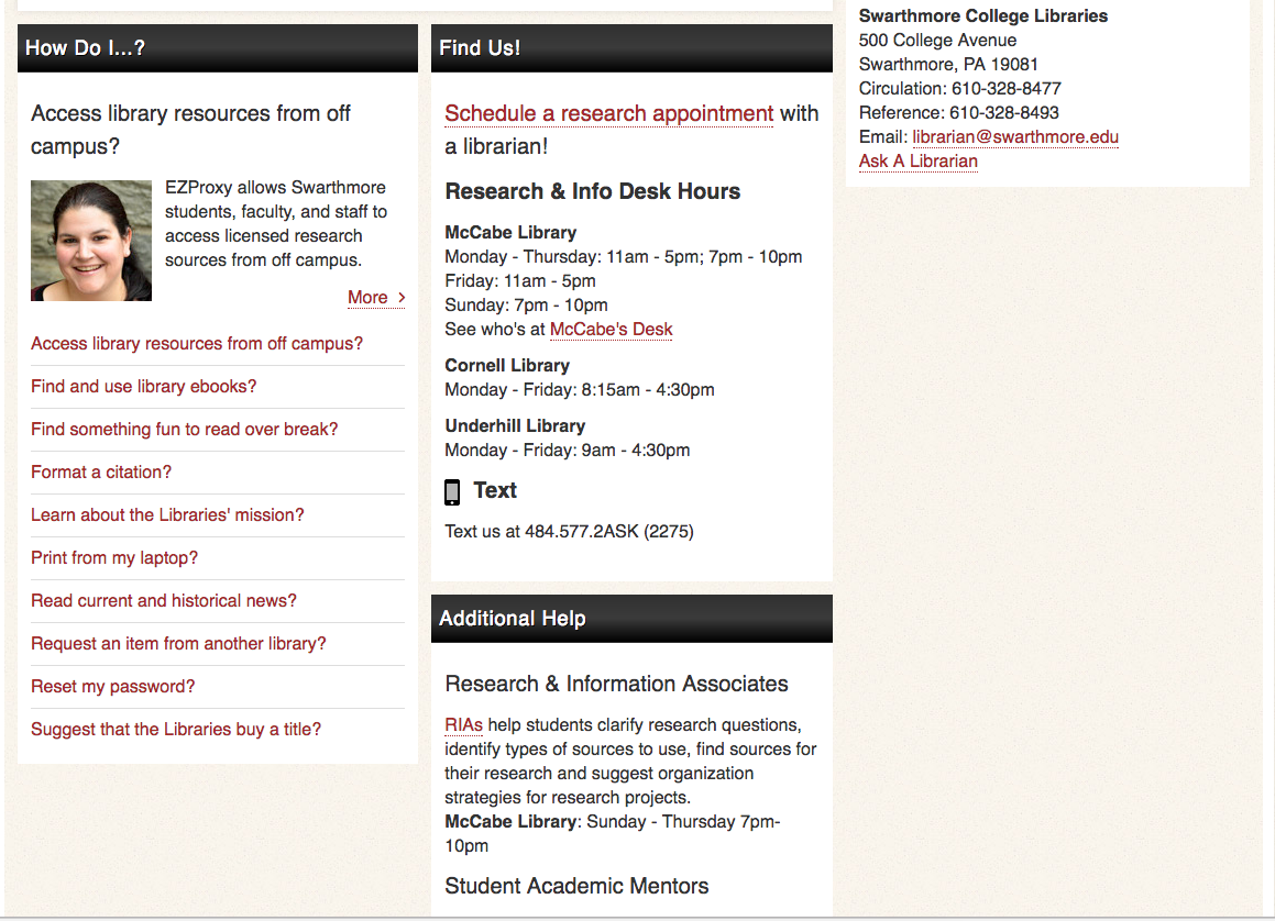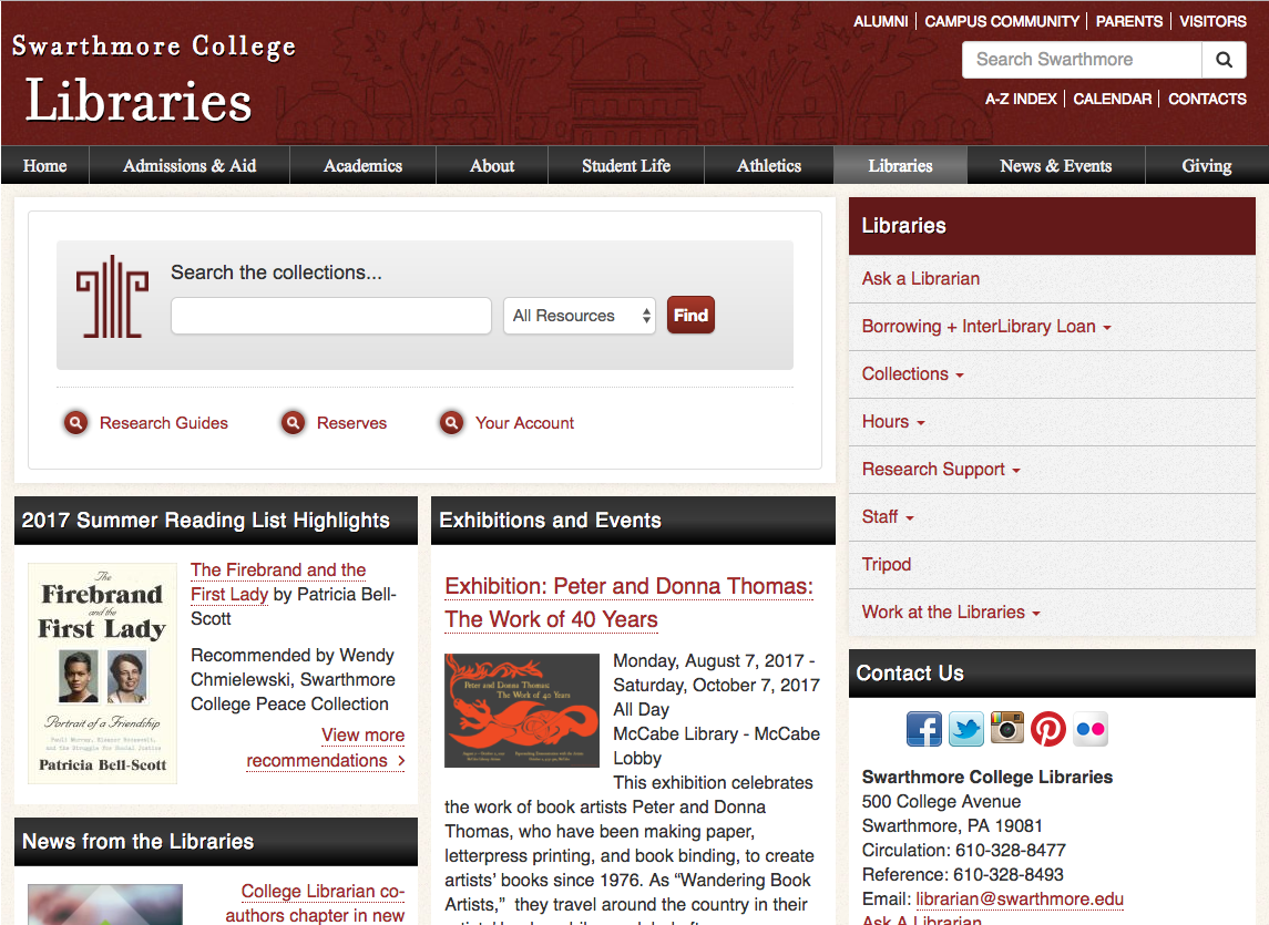 Visit library.swarthmore.edu for info and to contact:
