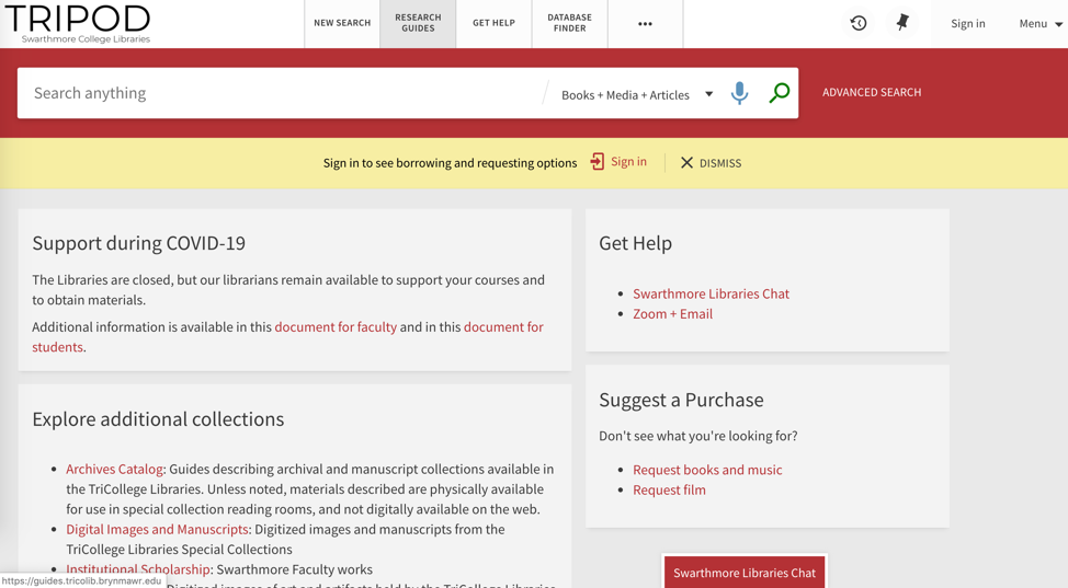 Note: You can access any of our databases by searching for them in Tripod