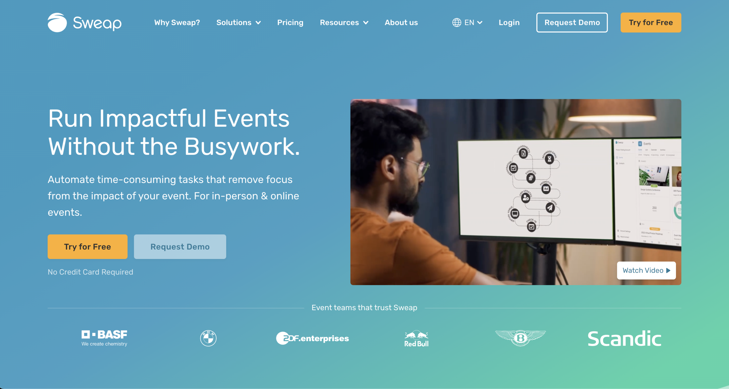 Shaping the digital future of events. At Sweap we believe that events in all their different formats are a key driver for growth. That’s why we are on the mission to turn events into the most valuable marketing channel.
