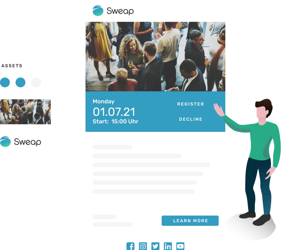Efficient event management with Sweap - your Event Efficiency Partner. Create events in under 5 minutes, manage guest lists, communicate with attendees, and ensure data security. Contact Jens Bolms at Sweap for more information.