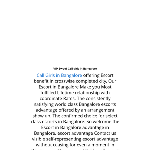 Call Girls in Bangalore offering Escort benefit in crosswise completed city, Our Escort in Bangalore Make you Most fulfilled Lifetime relationship with coordinate Rates. The consistently satisfying world class Bangalore escorts advantage offered by a