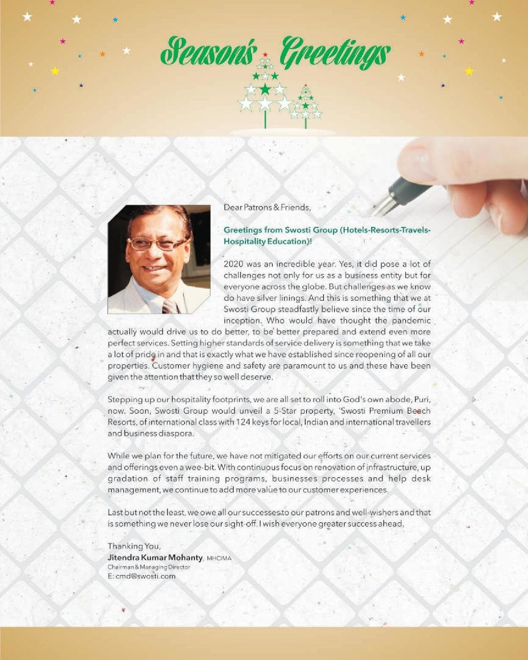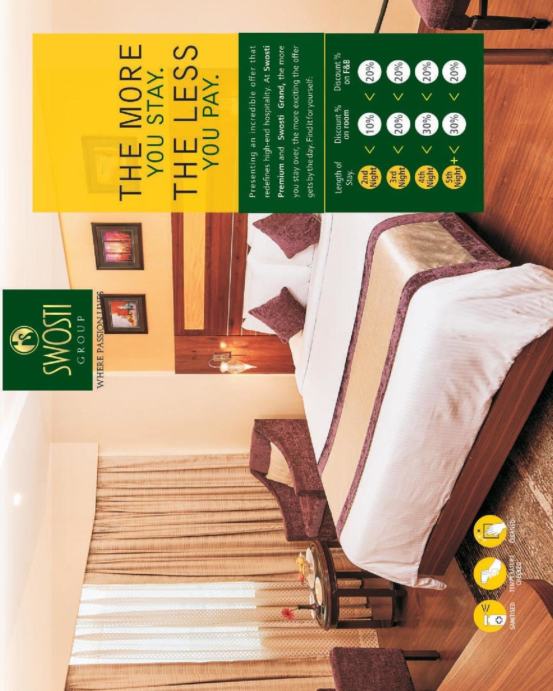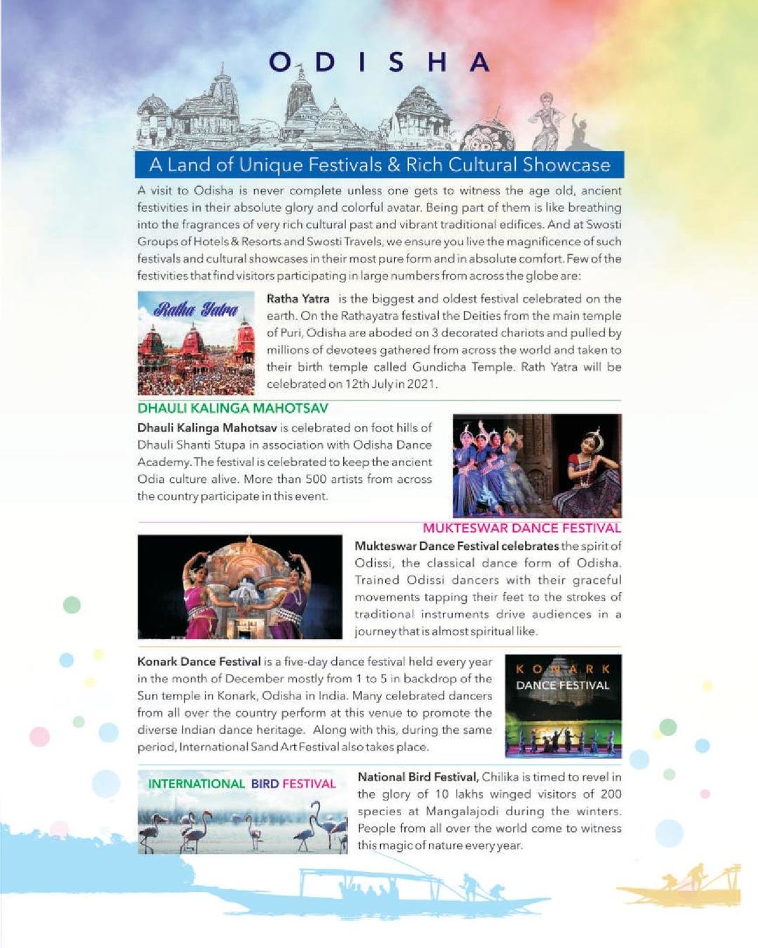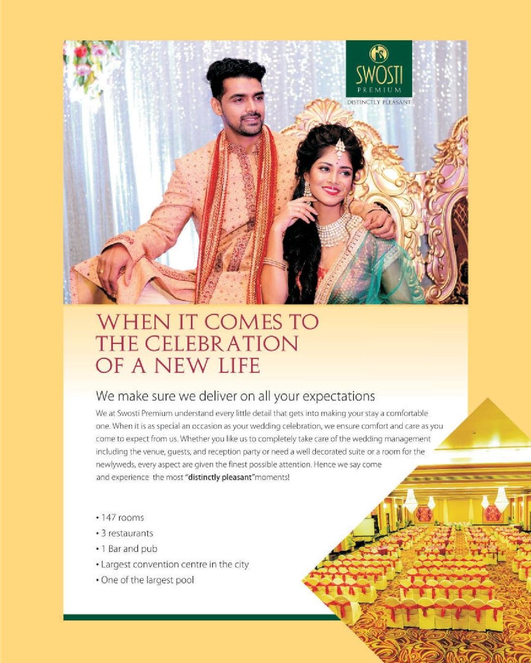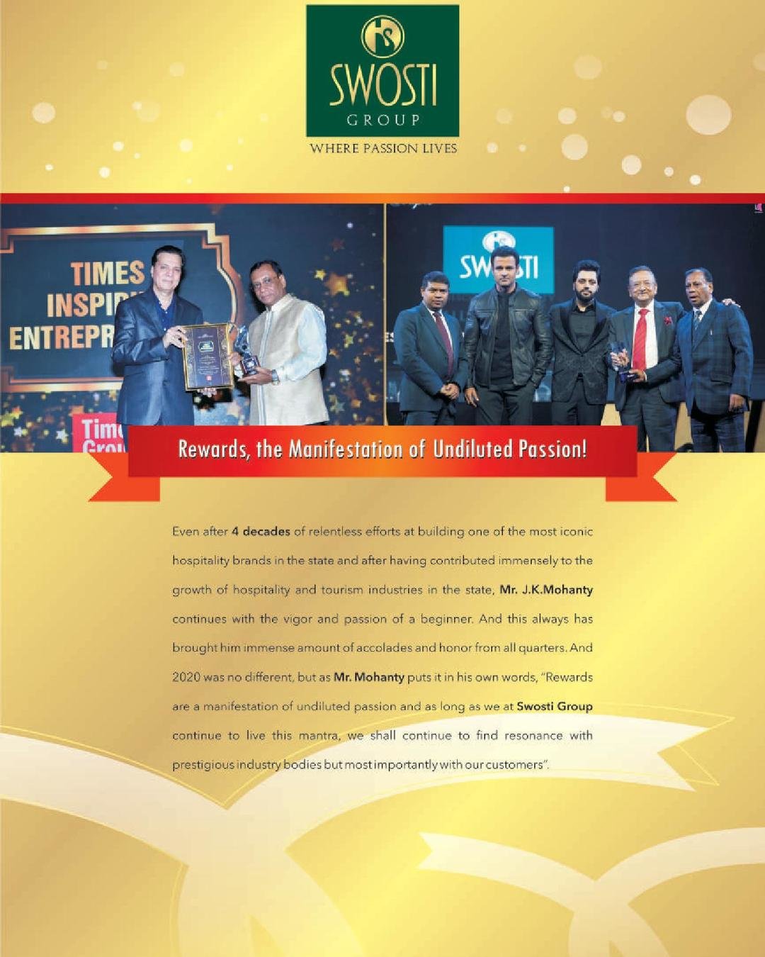 Swosti Group is the largest hotel chain in Odisha consisting of two majestic hotels in Bhubaneswar namely, Swosti Grand and Swosti Premium, and two resorts; one at Chilika and another at Gopalpur. All these hotels are competently supported by the largest tour operator of the state Swosti Travels.