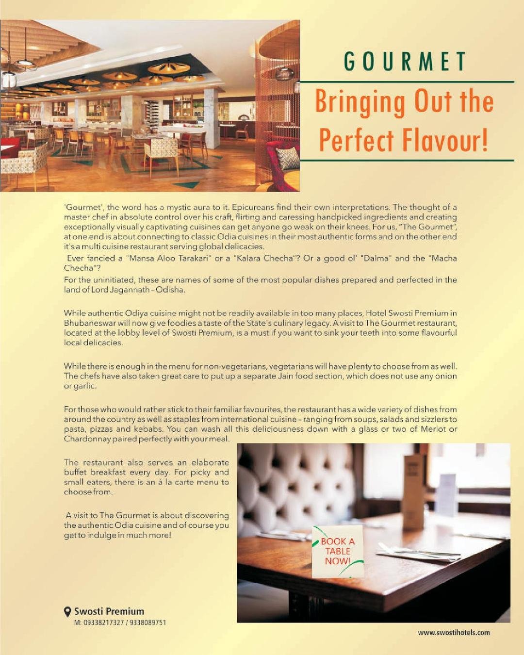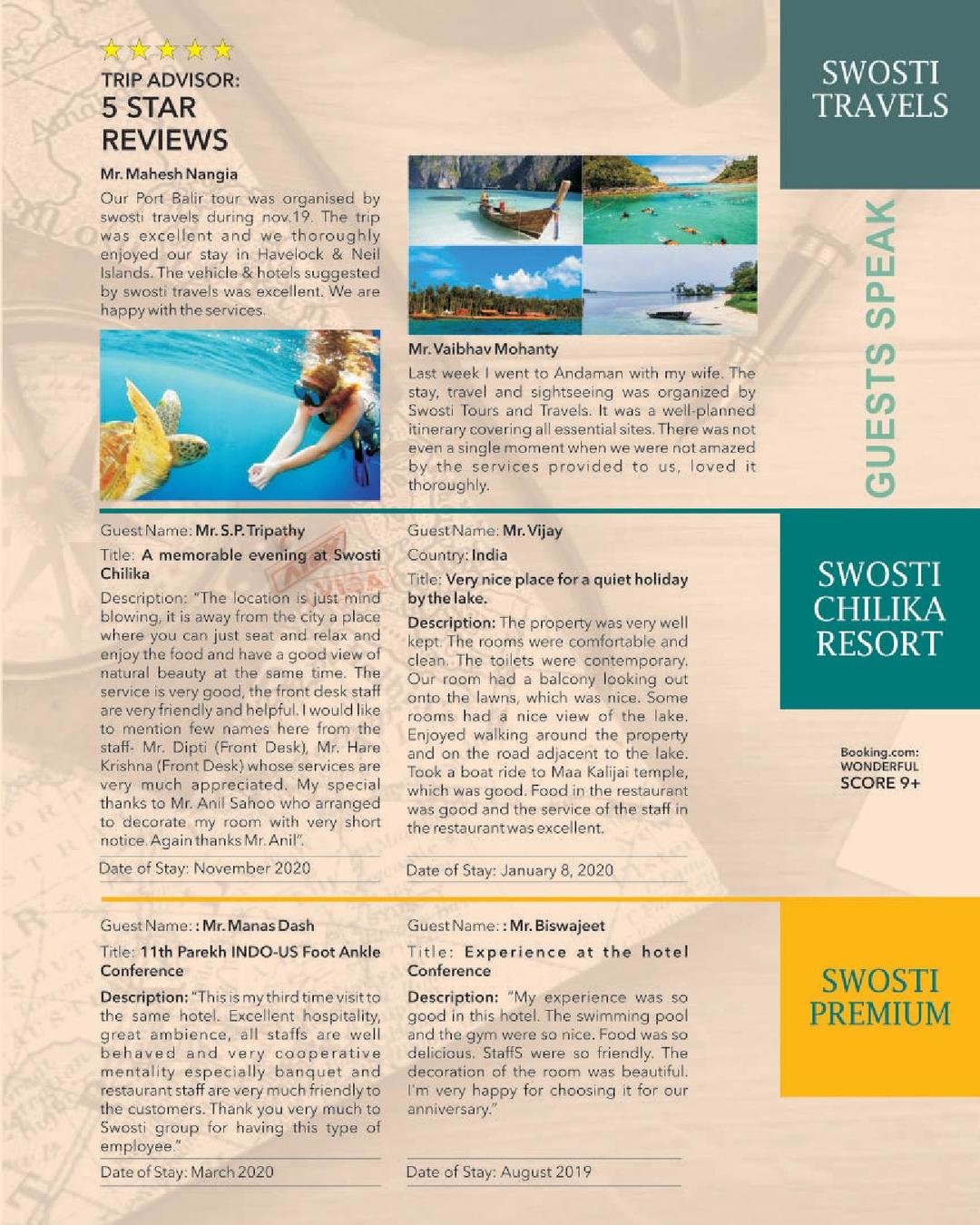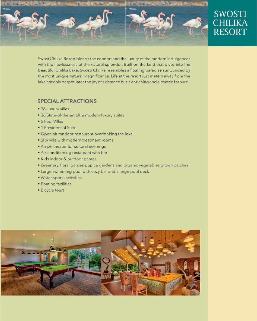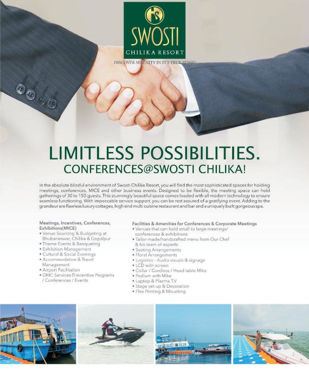 Swosti Group is the largest hotel chain in Odisha consisting of two majestic hotels in Bhubaneswar namely, Swosti Grand and Swosti Premium, and two resorts; one at Chilika and another at Gopalpur.