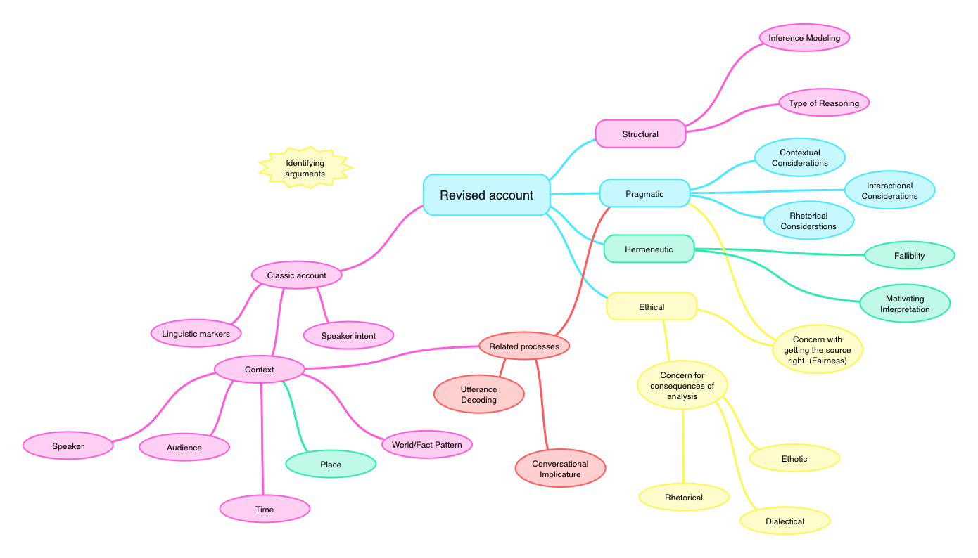 - takes finding arguments to be a matter of rightly understanding the person who gives them, along both the semantic and pragmatic levels of analysis.