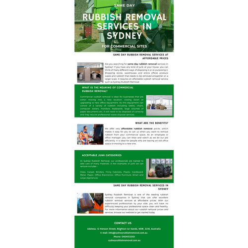 Sydney Rubbish Removal is the number one choice when people need a quick and reliable rubbish removal company. To learn more about how they can help you, call them directly on 0404 152 001 or visit their website: https://sydneyrubbishremoval.com.au/services/