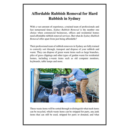 Consisting of a highly trained team of professional rubbish removers with years of experience servicing the entire Sydney area, contact Sydney Rubbish Removal when you need timely and affordable rubbish removal services. Visit: https://sydneyrubbishremoval.com.au/affordable-household-rubbish-removal-services-in-sydney/