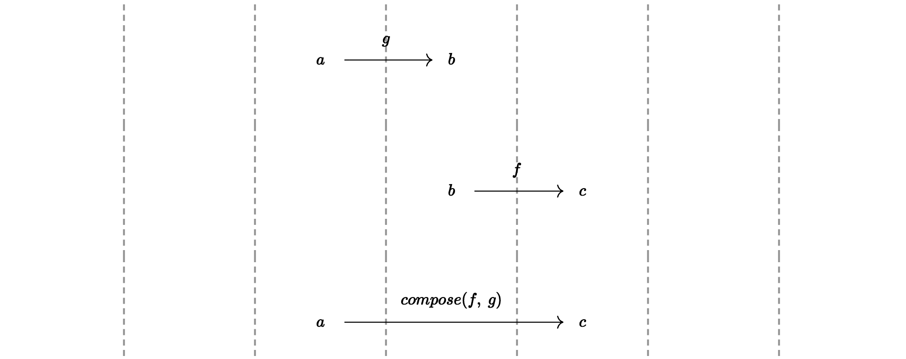 const pipe = (...fns) => x => fns.reduce((y,f)=> f(y), x);A category consists of a collection of nodes (objects) and morphisms (functions). An object could be numbers, strings, urls, customers, dogs or any other way you wish to organize like-things. (a, b, and c in the graphic are the objects.)