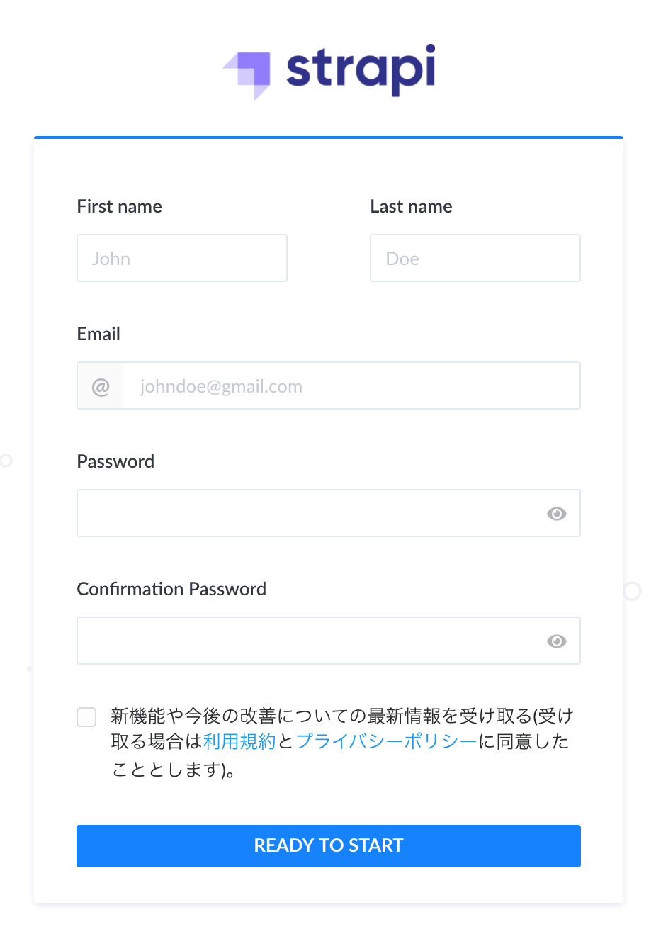 $ yarn create strapi-app {PROJECT_NAME} --quickstart