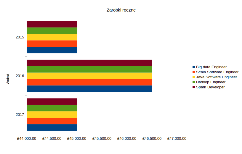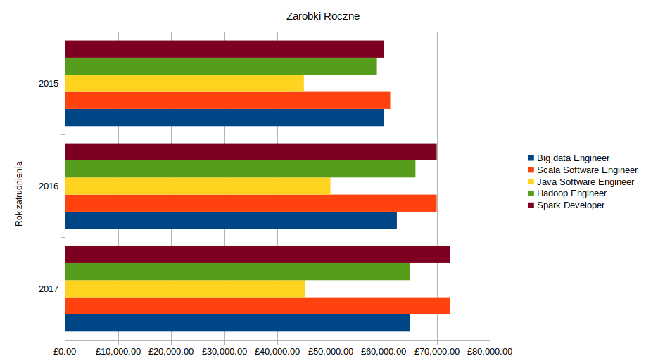 Trendy zarobków rocznych na terenie Wielkiej Brytanii w latach 2015, 2016 oraz 2017 dla formy zatrudnienia na kontrakt.