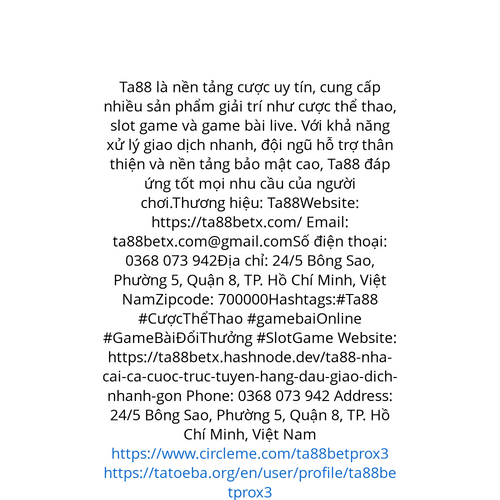 Website: https://ta88betx.hashnode.dev/ta88-nha-cai-ca-cuoc-truc-tuyen-hang-dau-giao-dich-nhanh-gon Ta88 là nền tảng cược uy tín, cung cấp nhiều sản phẩm giải trí như cược thể thao, slot game và game bài live. Với khả năng xử lý giao dịch nhanh, đội
