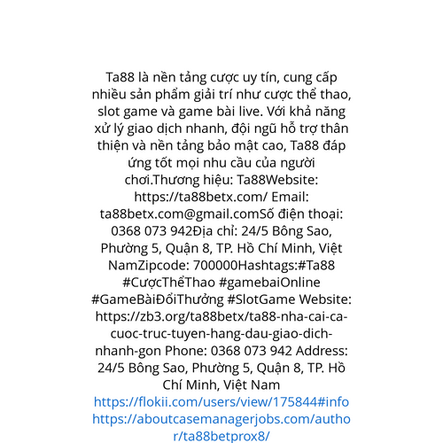 Website: https://zb3.org/ta88betx/ta88-nha-cai-ca-cuoc-truc-tuyen-hang-dau-giao-dich-nhanh-gon Ta88 là nền tảng cược uy tín, cung cấp nhiều sản phẩm giải trí như cược thể thao, slot game và game bài live. Với khả năng xử lý giao dịch nhanh, đội ngũ h