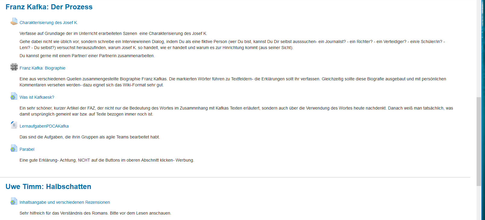 In Moodle finden sich die Materialien, Aufträge etc. ,