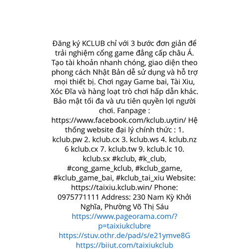 Website: https://taixiu.kclub.win/ Đăng ký KCLUB chỉ với 3 bước đơn giản để trải nghiệm cổng game đẳng cấp châu Á. Tạo tài khoản nhanh chóng, giao diện theo phong cách Nhật Bản dễ sử dụng và hỗ trợ mọi thiết bị. Chơi ngay Game bai, Tài Xiu, Xóc Đĩa