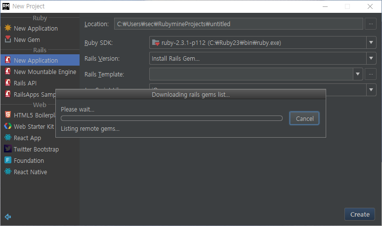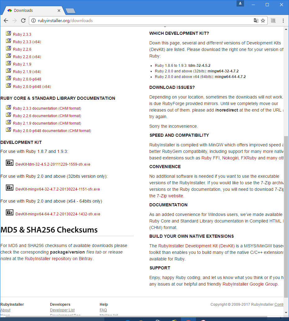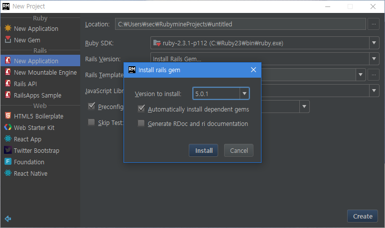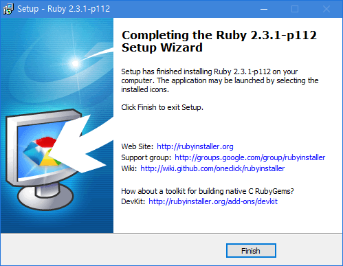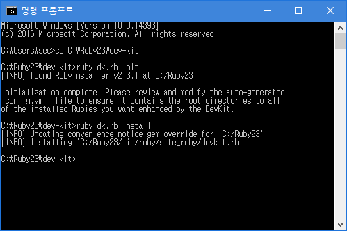 경로는 반드시 루비 설치 폴더내새로운 폴더를 생성해 지정!