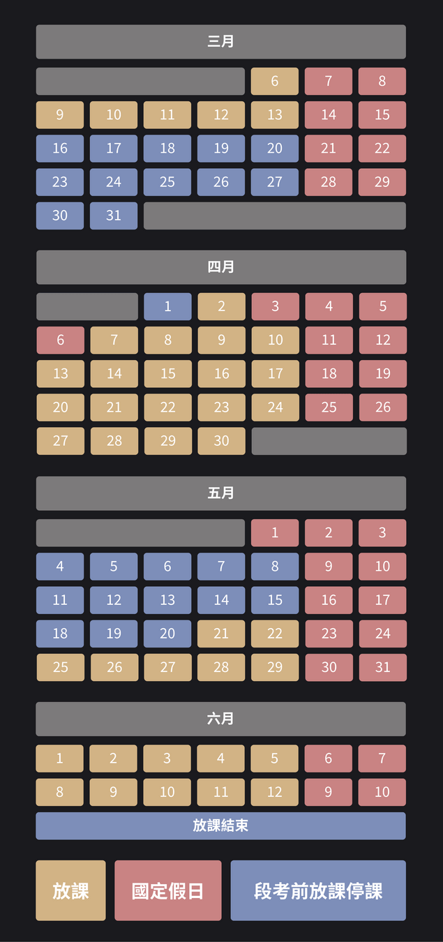 教學課程:上學期放課 Discord.js、下學期社課 JavaScript、下學期放課 React