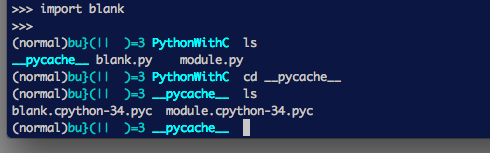 import文を使うと、PythonVMがモジュール内のコードを字句解析、構文解析などをしたあとPythonVMが実行可能なバイトコードにしてくれる(= コンパイル)。