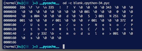 「毎回コンパイルするのだるくね?」ということで、*.pyc(py cache)というバイトコードが書かれたファイルをキャッシュ用に作る。