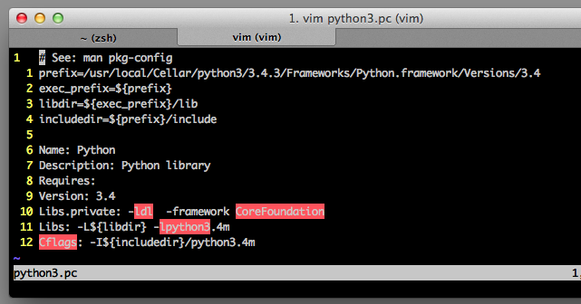 /usr/local/Frameworks/Python.framework/Versions/3.4/lib/pkgconfigMacだとFrameworksとかいうマジキチなところにある