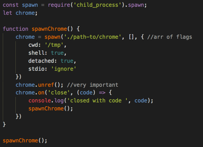 - Remeber to unref child processes and use /tmp dir as cwd