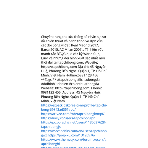 Website: http://tapchibong.com. Chuyên trang tra cứu thông số nhân sự, sơ đồ chiến thuật và hành trình vô địch của các đội bóng vĩ đại: Real Madrid 2017, Barca 2015, AC Milan 2007... Tái hiện sức mạnh các ĐTQG qua các kỳ World Cup, Euro và những đội