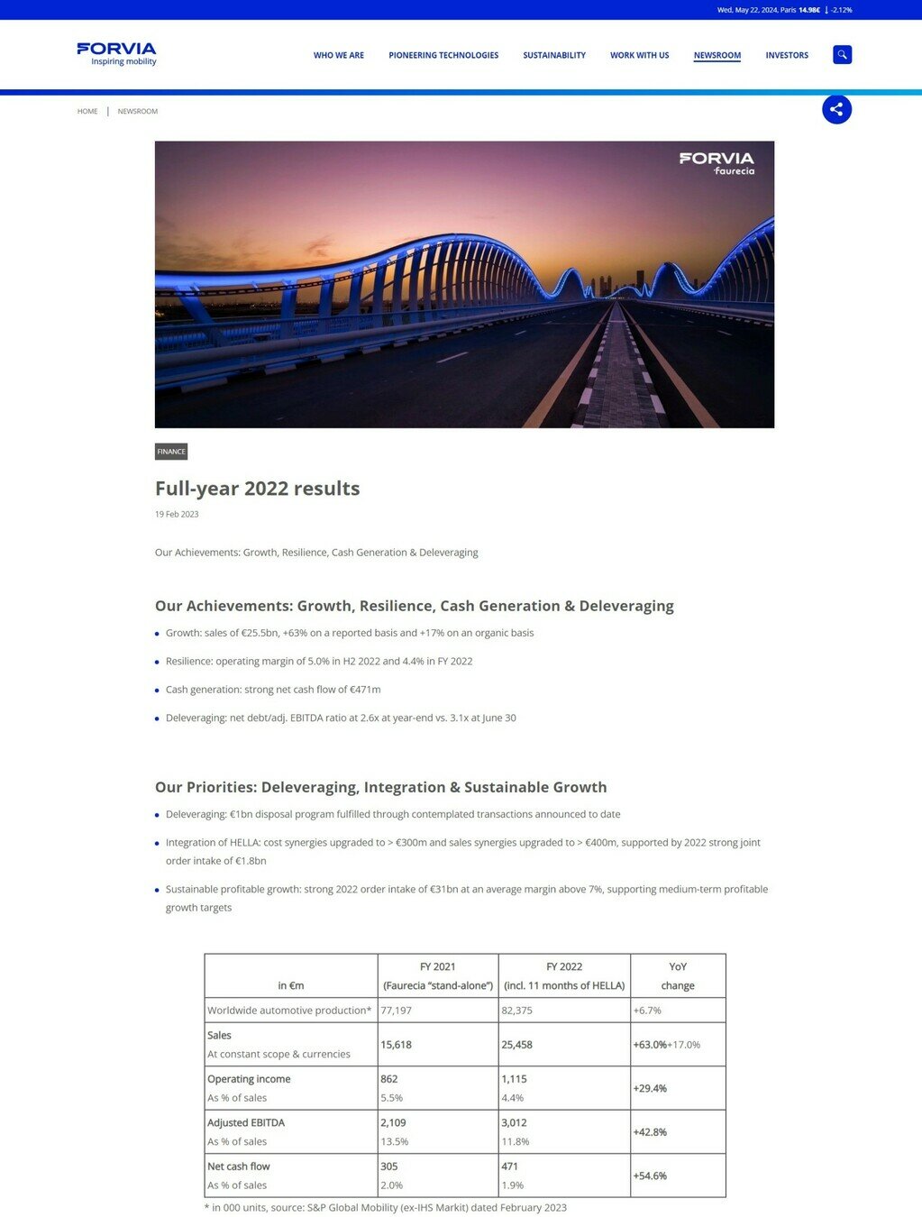 FORVIA was created in 2022 by bringing together two automotive technology leaders: Faurecia and HELLA. Both brands share complementary performance-driven cultures and are guided by a shared vision for a sustainable future.