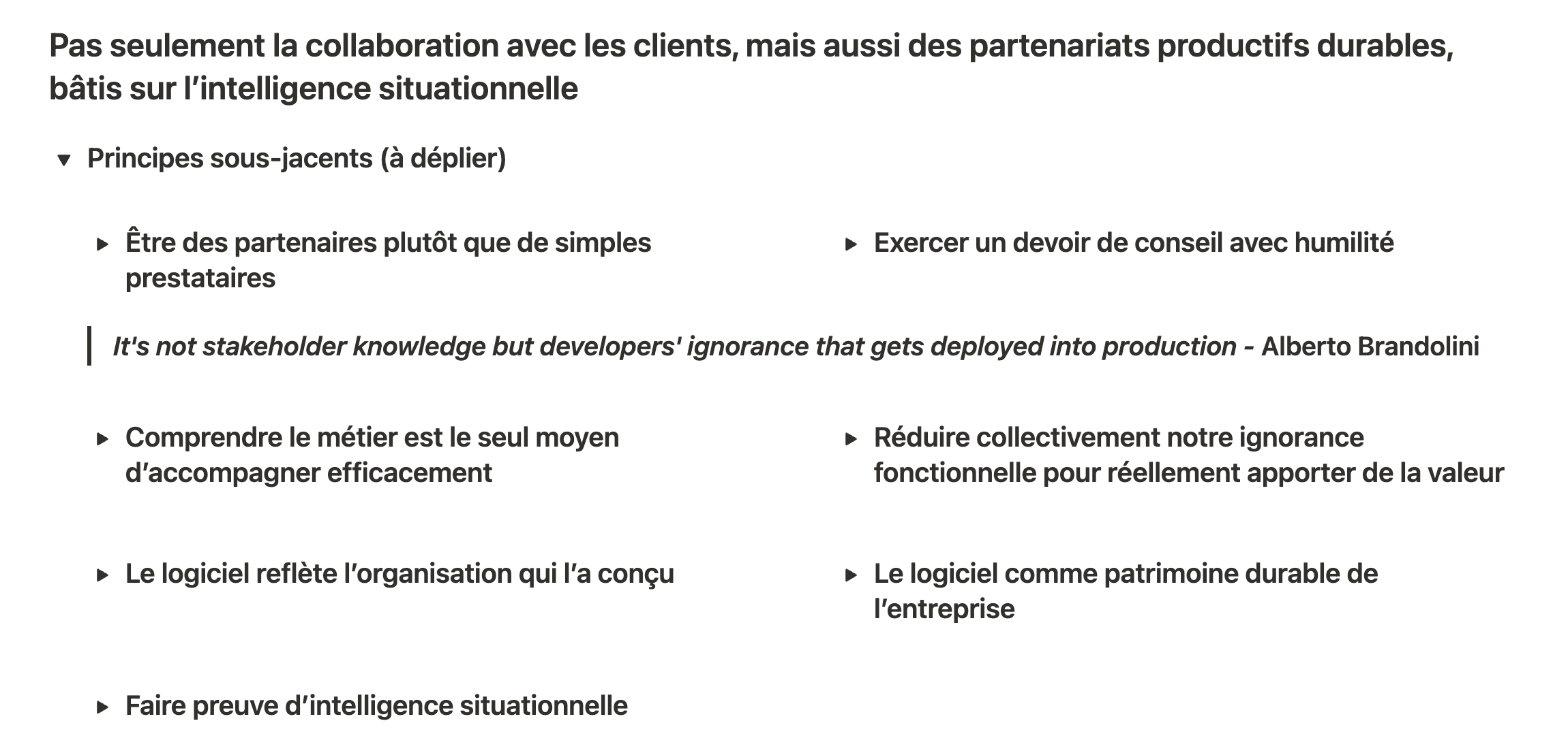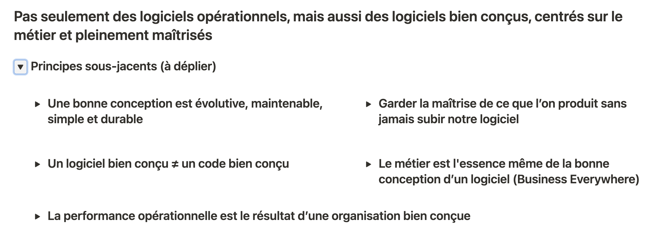 Pas seulement des logiciels opérationnels, mais aussi des logiciels bien conçus, centrés sur le métier et pleinement maîtrisés