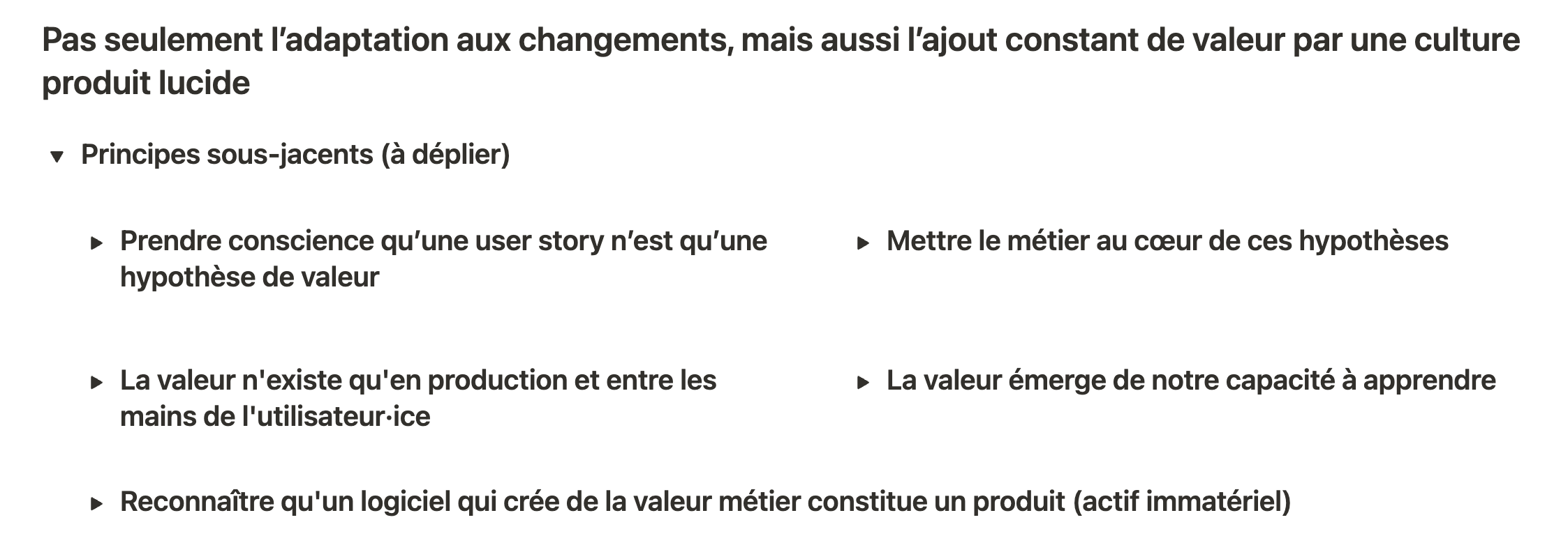 Pas seulement l’adaptation aux changements, mais aussi l’ajout constant de valeur par une culture produit lucide