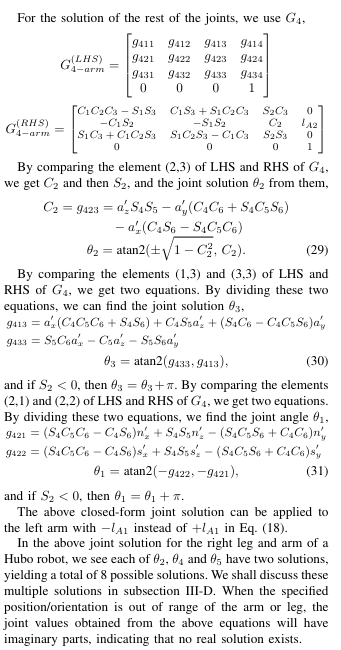 Closed-Form Inverse Kinematic Joint Solution for Humanoid Robots, Ali et al. 2010