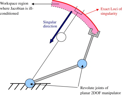 - Singular configurations have a rank-deficient kinematic Jacobian