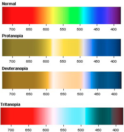 - Protanopia and deuteranopia both get called "red-green" colorblindness