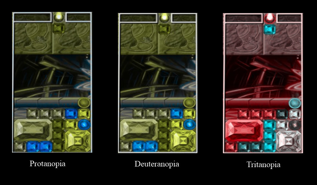 - Bottom plate indistinguishable to people with at least deuteranopia, possibly also protanopia