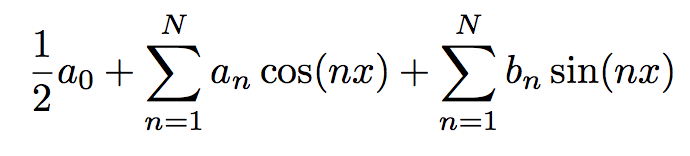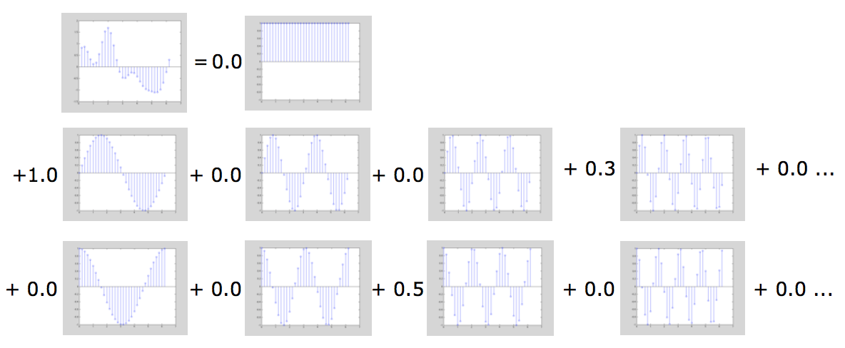 Example representation of earlier signal using Real Fourier series as dictionary: