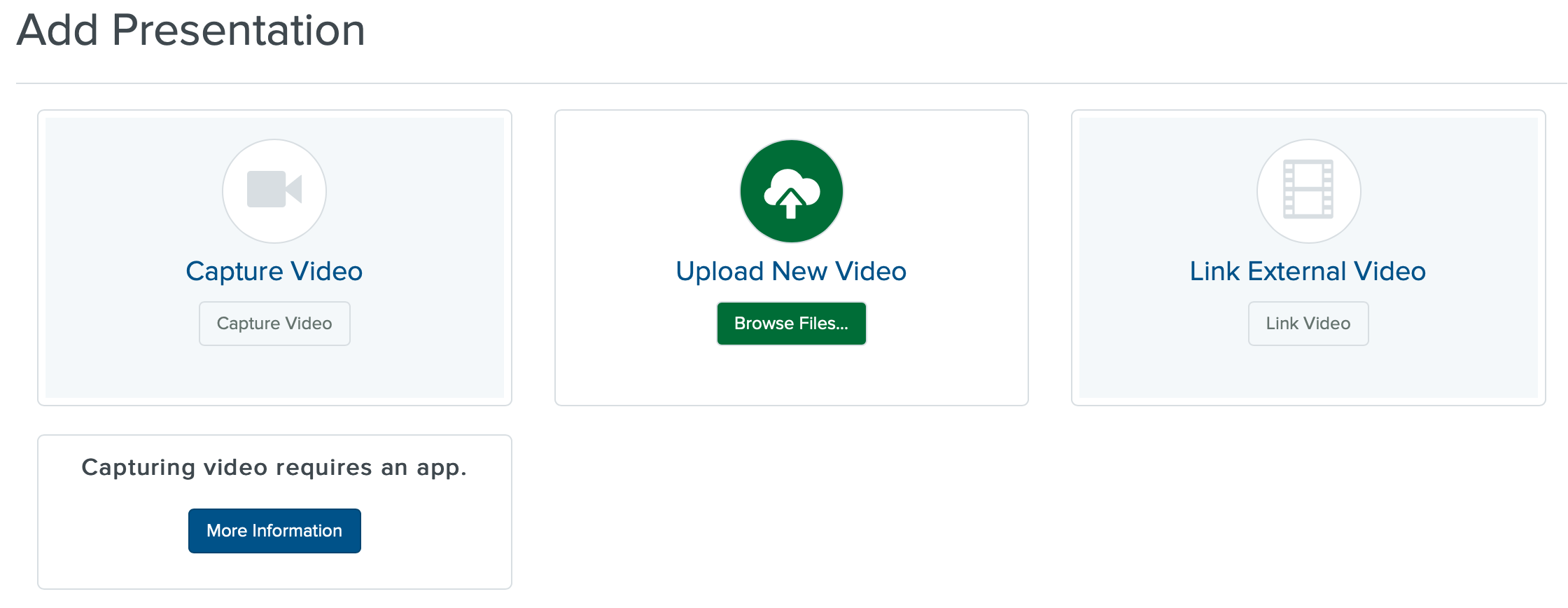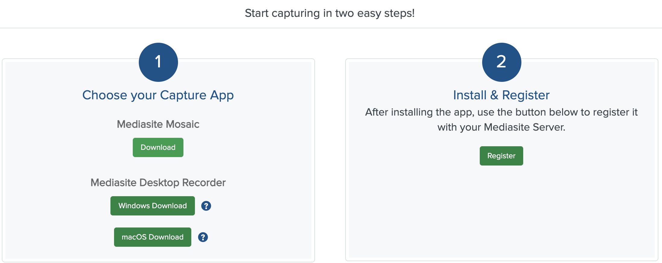 Mediasite Desktop Recorder (MDR) , Mediasite Capture and Mediasite Mosaic are online screencasting apps that directly integrate into My Mediasite.
