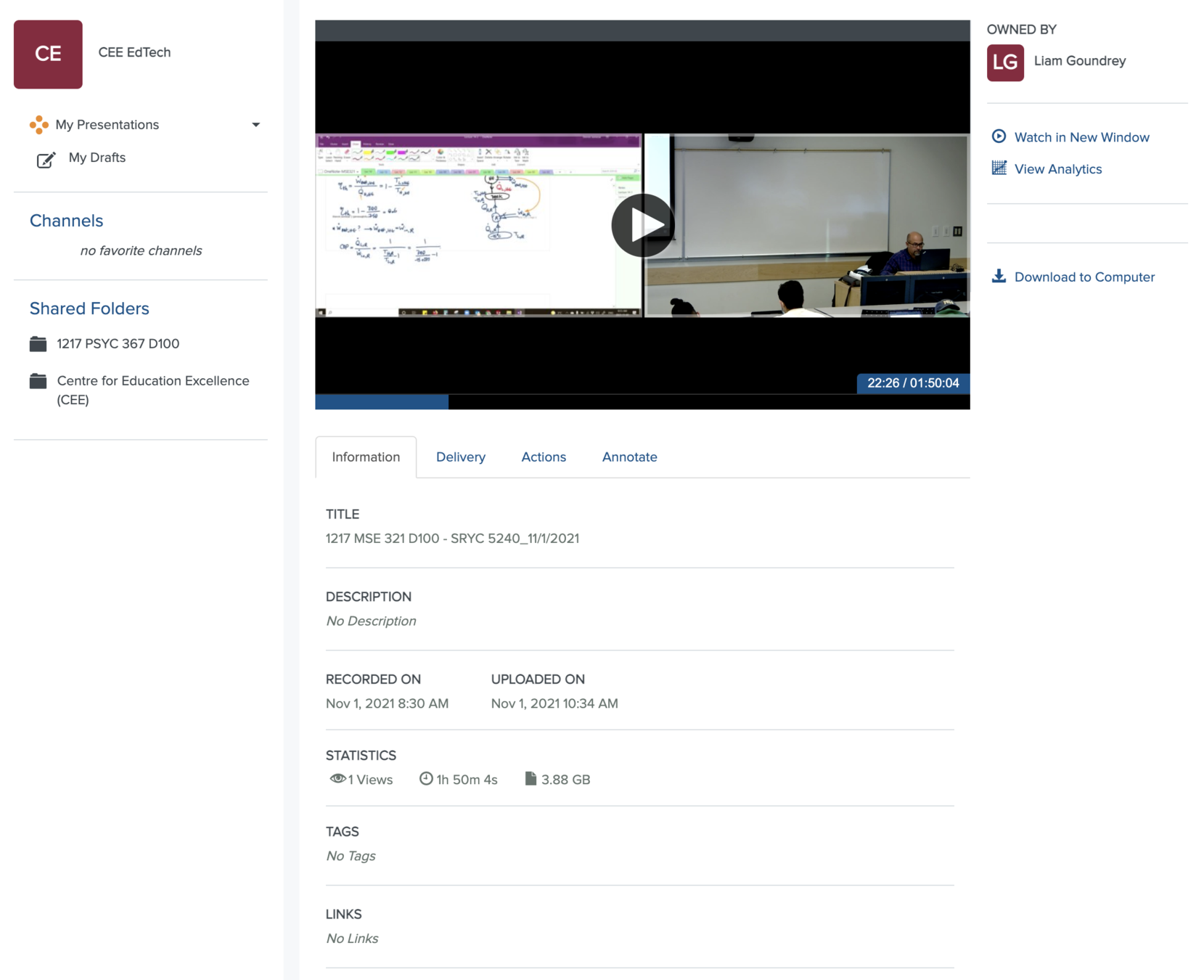 My Mediasite is SFU's video streaming service and online repository for stored video and audio recordings for staff and faculty. These recordings can then be directly embedded into Canvas.