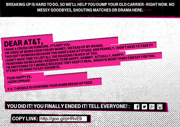 At the beginning of this year, T-Mobile offered to pay the contract cancellation fees of any person who "broke up" with their existing cell phone service and switched to T-Mobile.