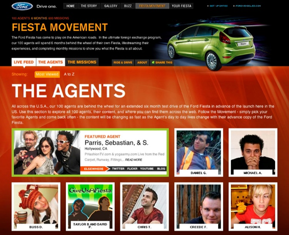 Take 100 influential bloggers, give them each a car and a video camera, send them monthly challenges, and ask them to blog about their experiences.