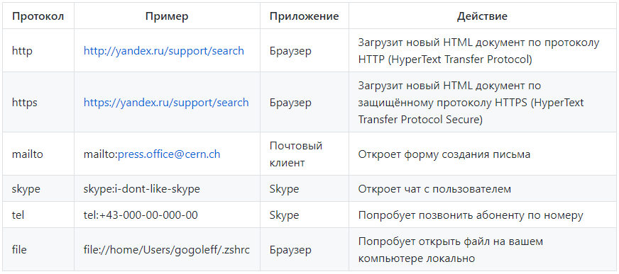 Метод доступа обычно представляет собой идентификатор протокола, который определяет какая программа будет обрабатывать событие нажатия на ссылку.