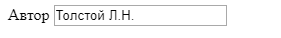 <input id="author" name="author" value="Толстой Л.Н.">Если подпись необходима, но места для неё нет. Можно использовать атрибут placeholder у самого элемента input. Тогда подпись будет прямо в поле ввода. Атрибут может быть использован, конечно, только в подходящих для этого типах полей.