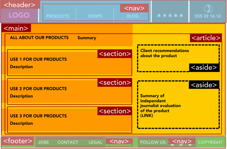 Такая разметка помогает браузерам и поисковым системам лучше ориентироваться в вашем документе. Например, чтобы автоматически сформировать версию для чтения, или помочь выделить из документа адрес и телефон, или информацию по фильму, товару, книге.